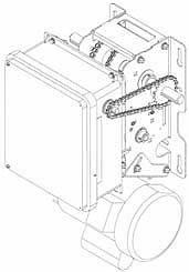 Options principales : tendeur à chaîne, paliers à roulement sur l'arbre de sortie, fin de course double, délai d'inversion, minuterie de fermeture, circuit de contrôle électronique.